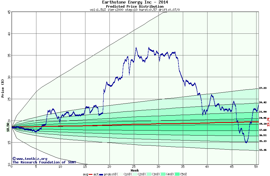 The following graph plots the year-to-date performance of the stock for 2014 compared to the probability calculated by a random walk model.