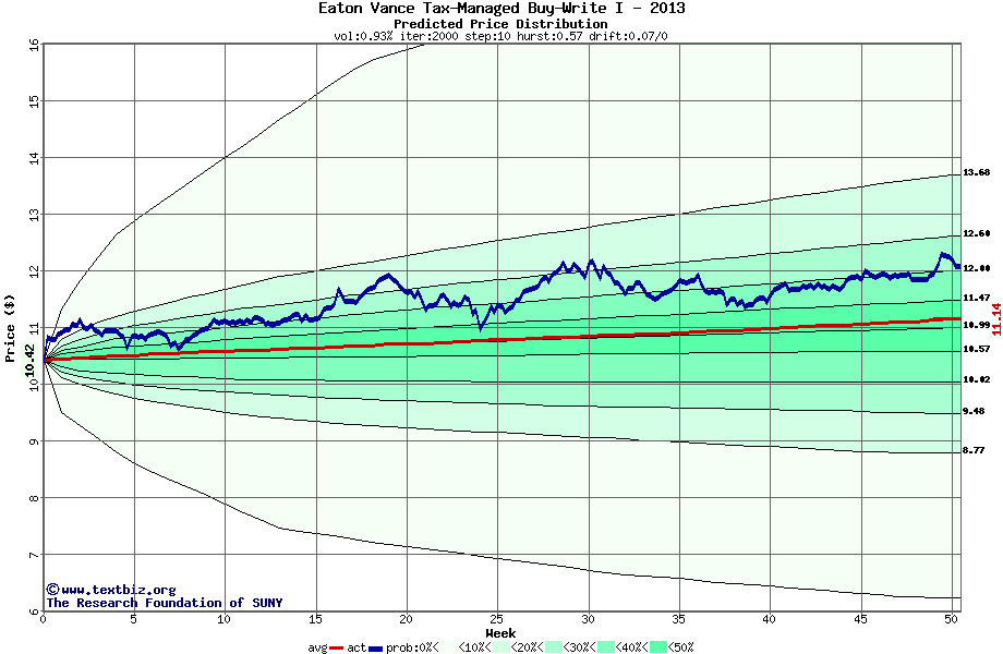 The following graph plots the year-to-date performance of the stock for 2013 compared to the probability calculated by a random walk model.