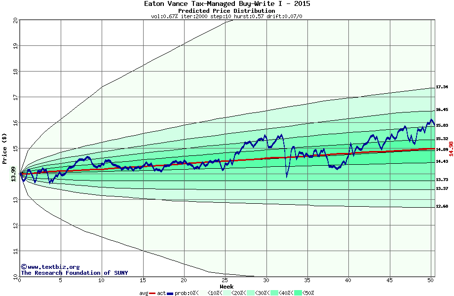 The following graph plots the year-to-date performance of the stock for 2015 compared to the probability calculated by a random walk model.