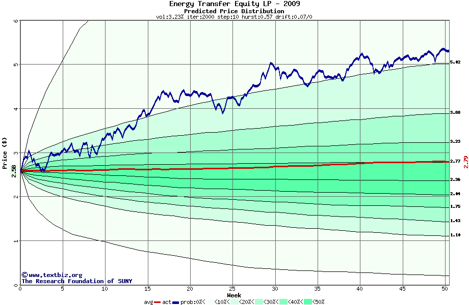 The following graph plots the year-to-date performance of the stock for 2009 compared to the probability calculated by a random walk model.