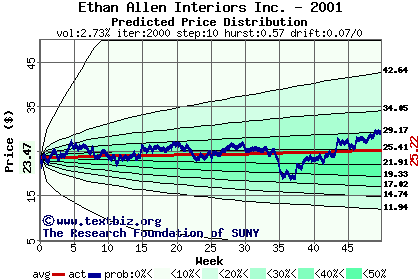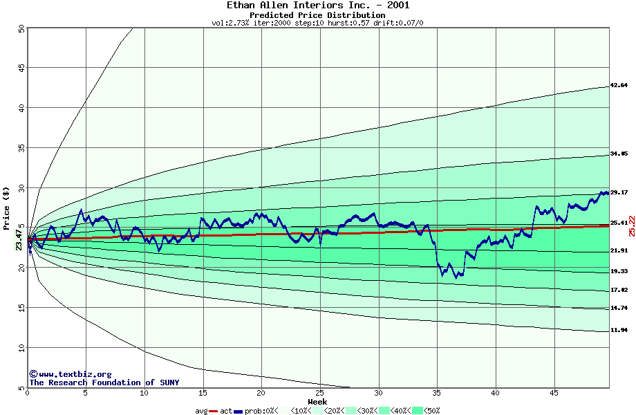 The following graph plots the year-to-date performance of the stock for 2001 compared to the probability calculated by a random walk model.