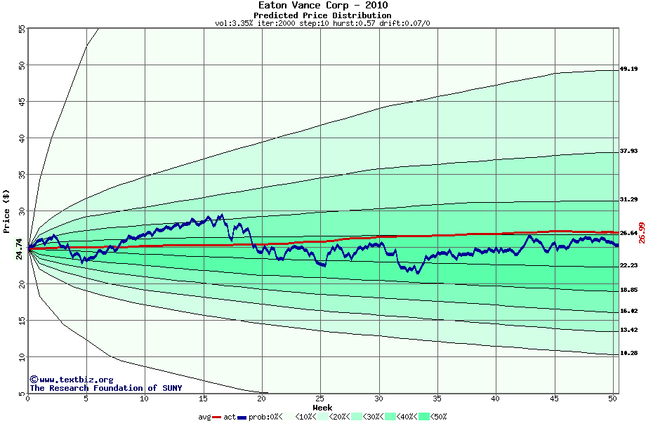 The following graph plots the year-to-date performance of the stock for 2010 compared to the probability calculated by a random walk model.