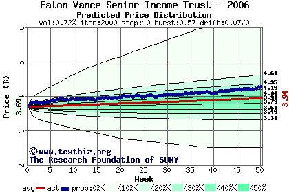The high to date and low to date prices of the stock plotted against a random walk model for 2006 (what's this?).