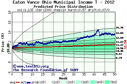 The high to date and low to date prices of the stock plotted against a random walk model for 2012 (what's this?).