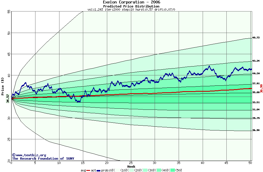 The following graph plots the year-to-date performance of the stock for 2006 compared to the probability calculated by a random walk model.