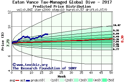 The high to date and low to date prices of the stock plotted against a random walk model for 2017 (what's this?).