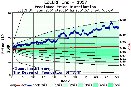 The following graph plots the year-to-date performance of the stock for 1997 compared to the probability calculated by a random walk model.