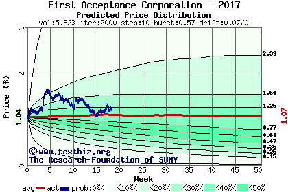 The high to date and low to date prices of the stock plotted against a random walk model for 2017 (what's this?).