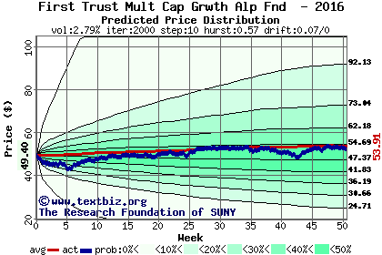 The following graph plots the year-to-date performance of the stock for 2016 compared to the probability calculated by a random walk model.
