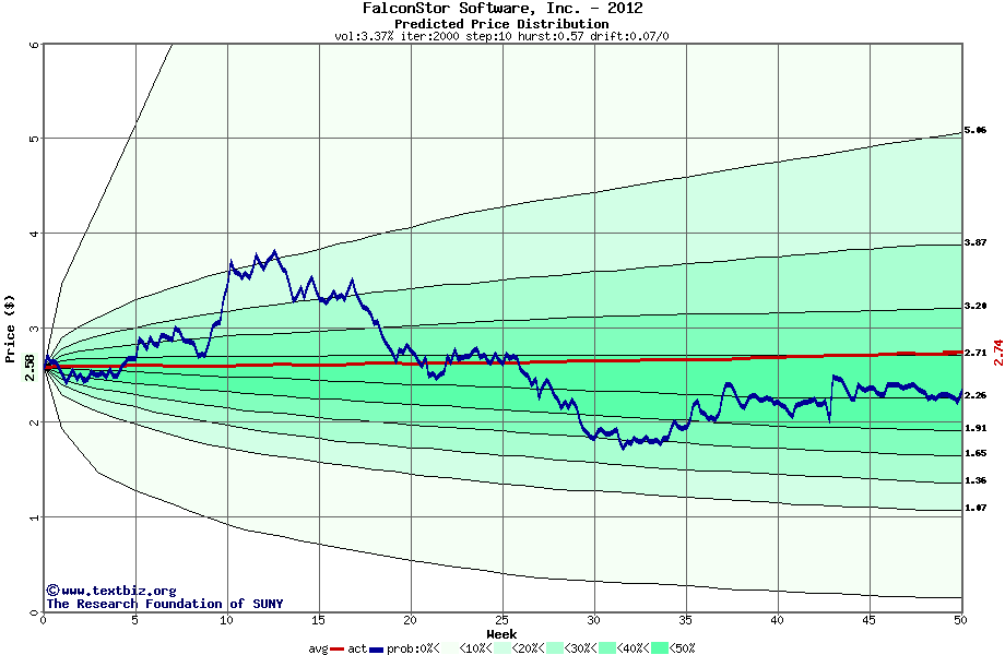 The following graph plots the year-to-date performance of the stock for 2012 compared to the probability calculated by a random walk model.