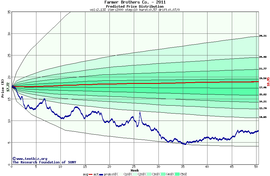 The following graph plots the year-to-date performance of the stock for 2011 compared to the probability calculated by a random walk model.