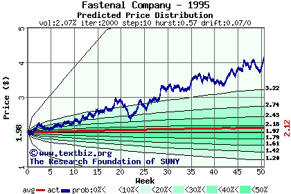 The following graph plots the year-to-date performance of the stock for 1995 compared to the probability calculated by a random walk model.