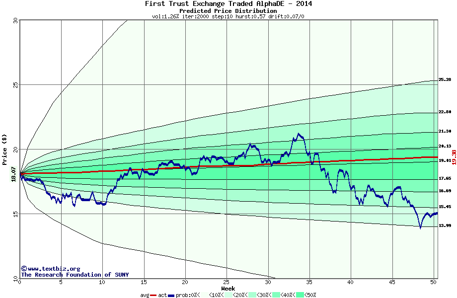 The following graph plots the year-to-date performance of the stock for 2014 compared to the probability calculated by a random walk model.