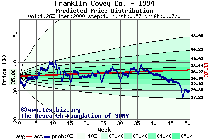 The following graph plots the year-to-date performance of the stock for 1994 compared to the probability calculated by a random walk model.