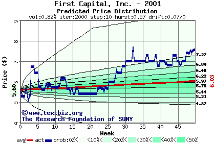 The following graph plots the year-to-date performance of the stock for 2001 compared to the probability calculated by a random walk model.