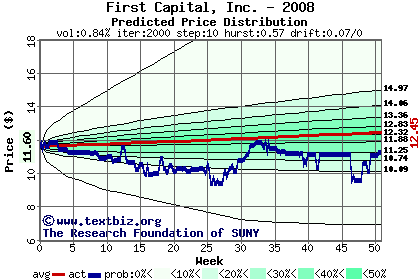 The following graph plots the year-to-date performance of the stock for 2008 compared to the probability calculated by a random walk model.
