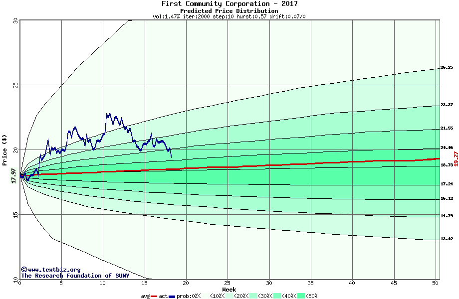 The following graph plots the year-to-date performance of the stock for 2017 compared to the probability calculated by a random walk model.