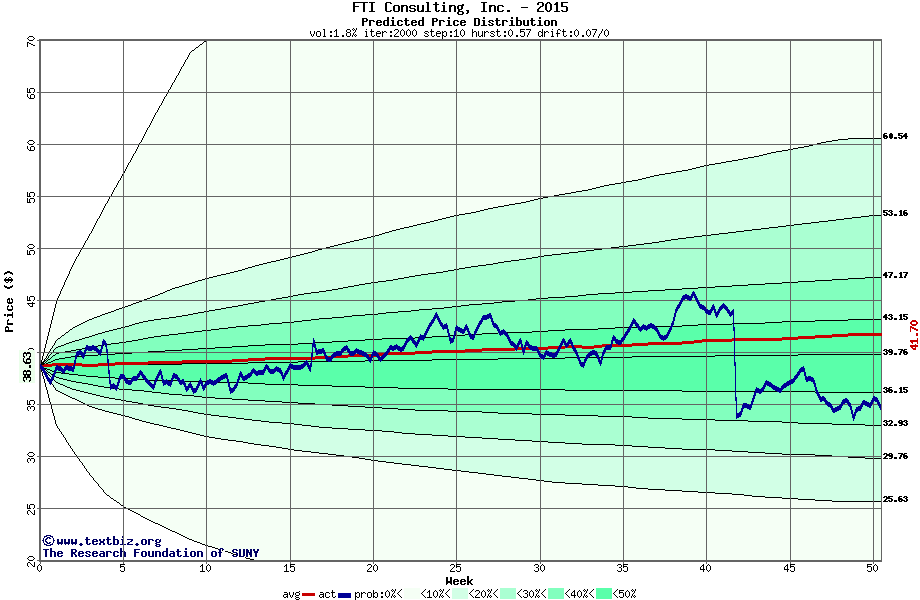 The following graph plots the year-to-date performance of the stock for 2015 compared to the probability calculated by a random walk model.