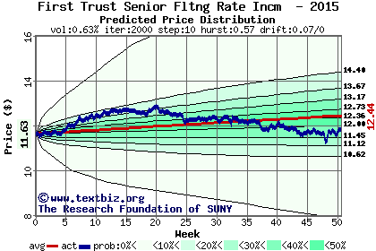The following graph plots the year-to-date performance of the stock for 2015 compared to the probability calculated by a random walk model.