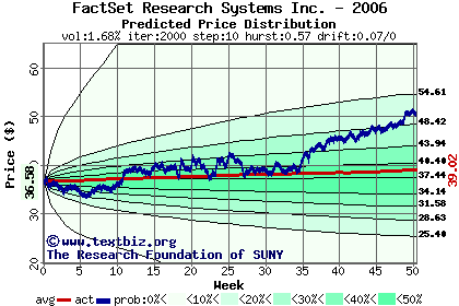 The following graph plots the year-to-date performance of the stock for 2006 compared to the probability calculated by a random walk model.