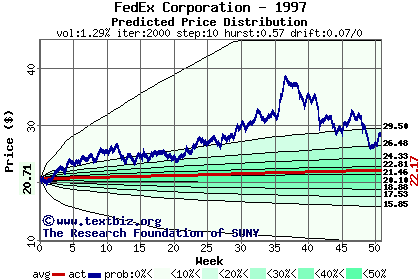 The following graph plots the year-to-date performance of the stock for 1997 compared to the probability calculated by a random walk model.