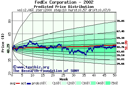 The following graph plots the year-to-date performance of the stock for 2002 compared to the probability calculated by a random walk model.