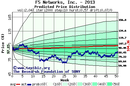 The following graph plots the year-to-date performance of the stock for 2013 compared to the probability calculated by a random walk model.