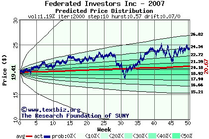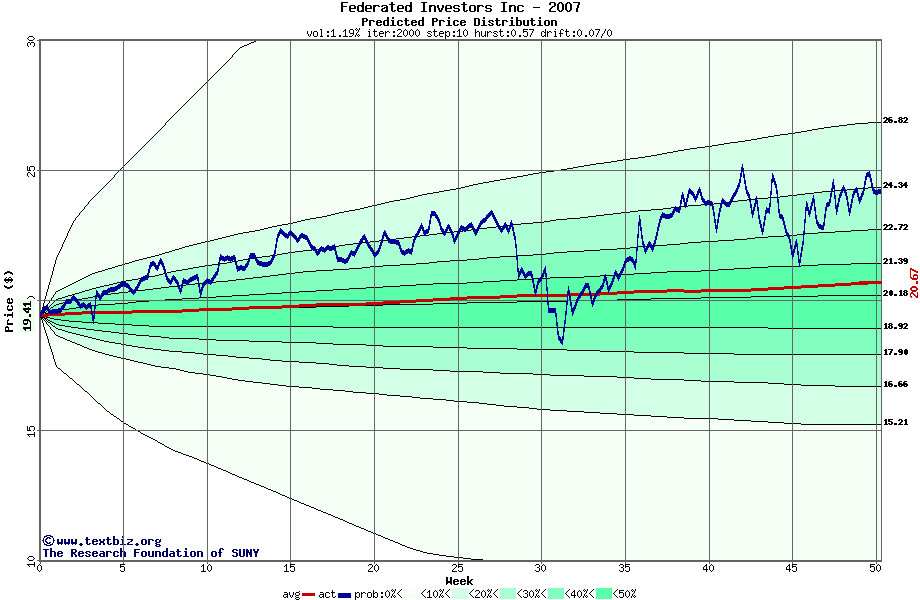 The following graph plots the year-to-date performance of the stock for 2007 compared to the probability calculated by a random walk model.
