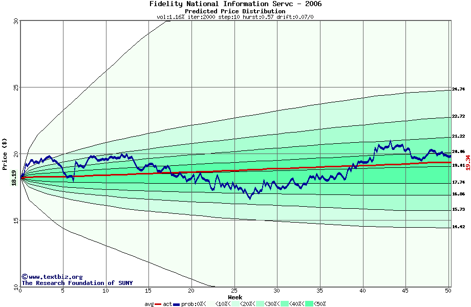 The following graph plots the year-to-date performance of the stock for 2006 compared to the probability calculated by a random walk model.