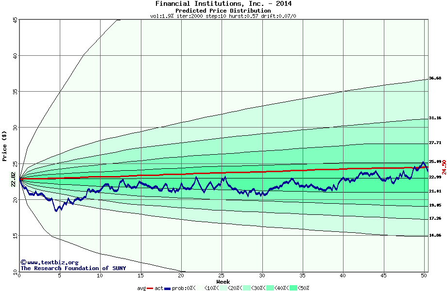 The following graph plots the year-to-date performance of the stock for 2014 compared to the probability calculated by a random walk model.