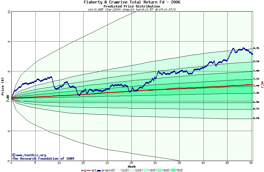The following graph plots the year-to-date performance of the stock for 2006 compared to the probability calculated by a random walk model.