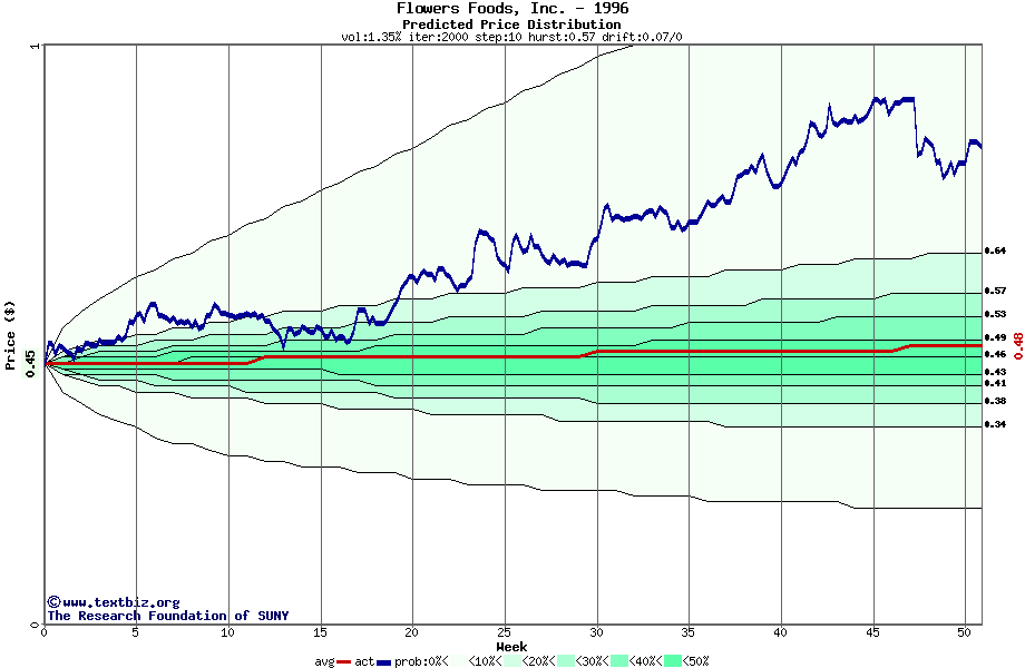 The following graph plots the year-to-date performance of the stock for 1996 compared to the probability calculated by a random walk model.