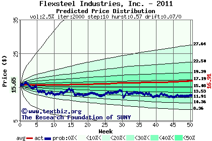 The high to date and low to date prices of the stock plotted against a random walk model for 2011 (what's this?).