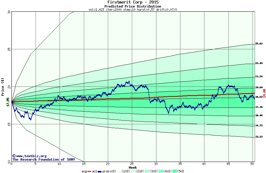 The following graph plots the year-to-date performance of the stock for 2015 compared to the probability calculated by a random walk model.