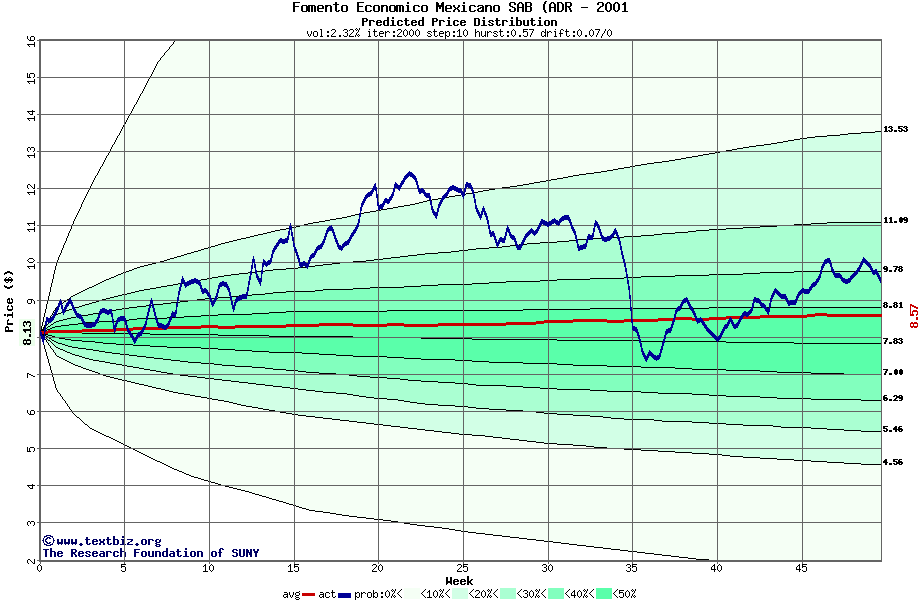 The following graph plots the year-to-date performance of the stock for 2001 compared to the probability calculated by a random walk model.