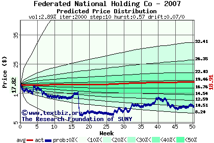 The following graph plots the year-to-date performance of the stock for 2007 compared to the probability calculated by a random walk model.