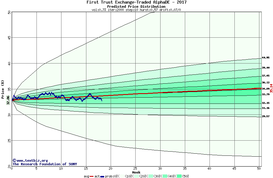 The following graph plots the year-to-date performance of the stock for 2017 compared to the probability calculated by a random walk model.
