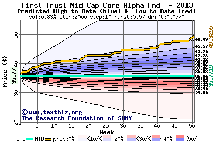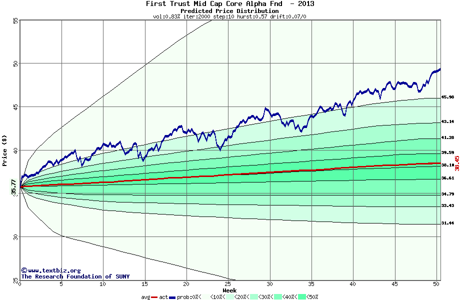 The following graph plots the year-to-date performance of the stock for 2013 compared to the probability calculated by a random walk model.