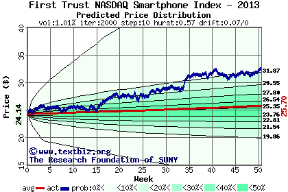 The following graph plots the year-to-date performance of the stock for 2013 compared to the probability calculated by a random walk model.
