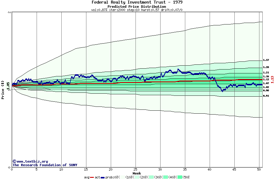 The following graph plots the year-to-date performance of the stock for 1979 compared to the probability calculated by a random walk model.