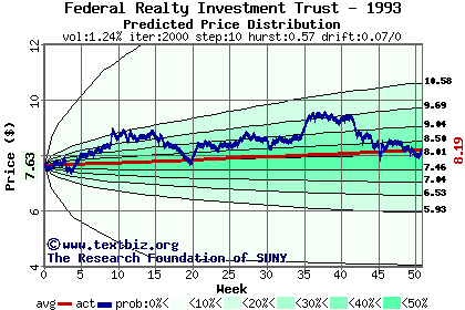 The following graph plots the year-to-date performance of the stock for 1993 compared to the probability calculated by a random walk model.