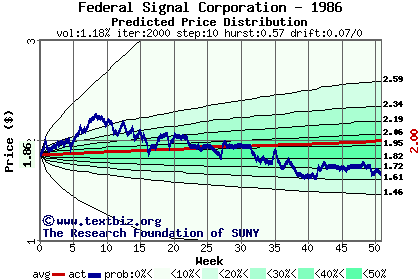The following graph plots the year-to-date performance of the stock for 1986 compared to the probability calculated by a random walk model.