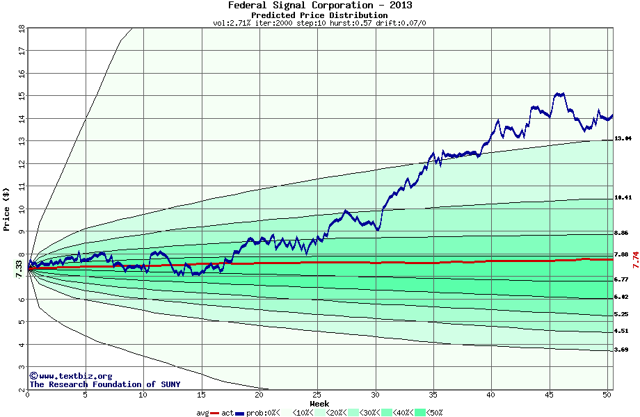 The following graph plots the year-to-date performance of the stock for 2013 compared to the probability calculated by a random walk model.