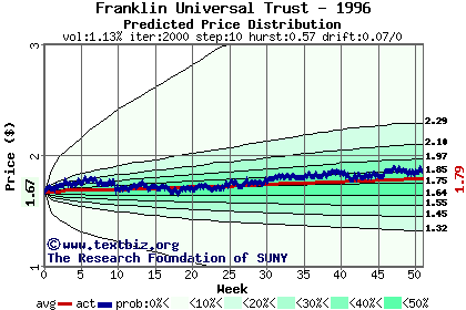 The high to date and low to date prices of the stock plotted against a random walk model for 1996 (what's this?).