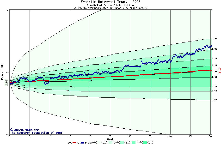 The following graph plots the year-to-date performance of the stock for 2006 compared to the probability calculated by a random walk model.