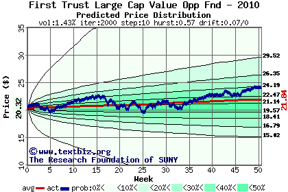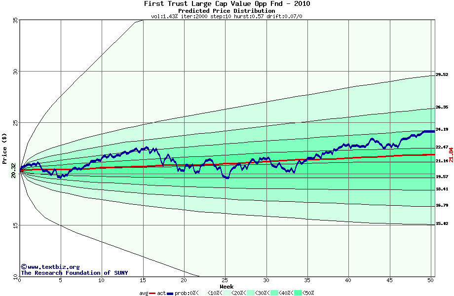 The following graph plots the year-to-date performance of the stock for 2010 compared to the probability calculated by a random walk model.