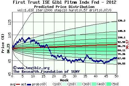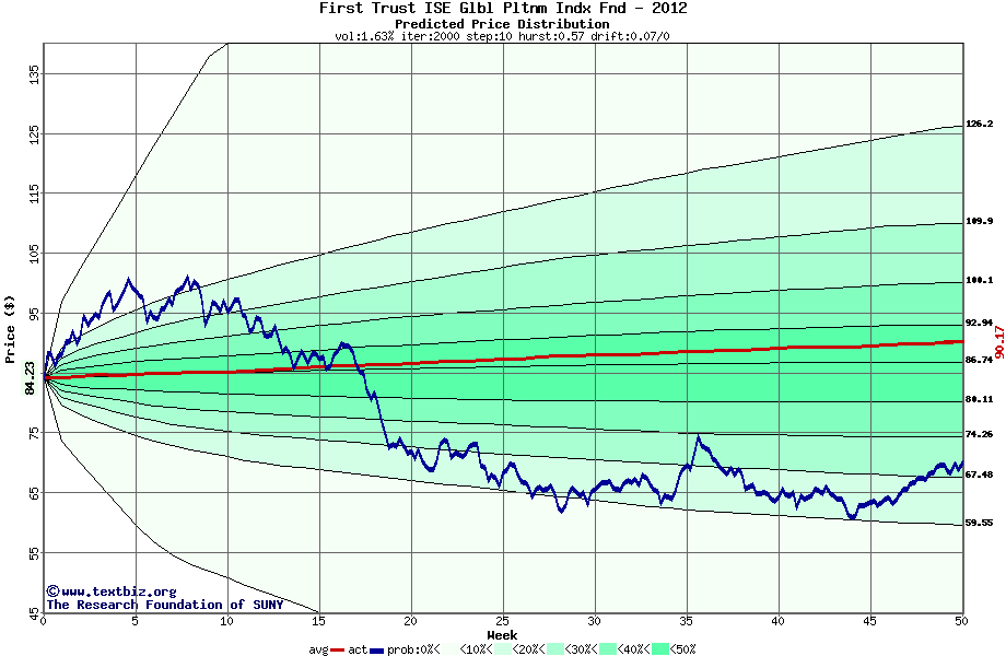 The following graph plots the year-to-date performance of the stock for 2012 compared to the probability calculated by a random walk model.