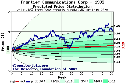 The high to date and low to date prices of the stock plotted against a random walk model for 1993 (what's this?).