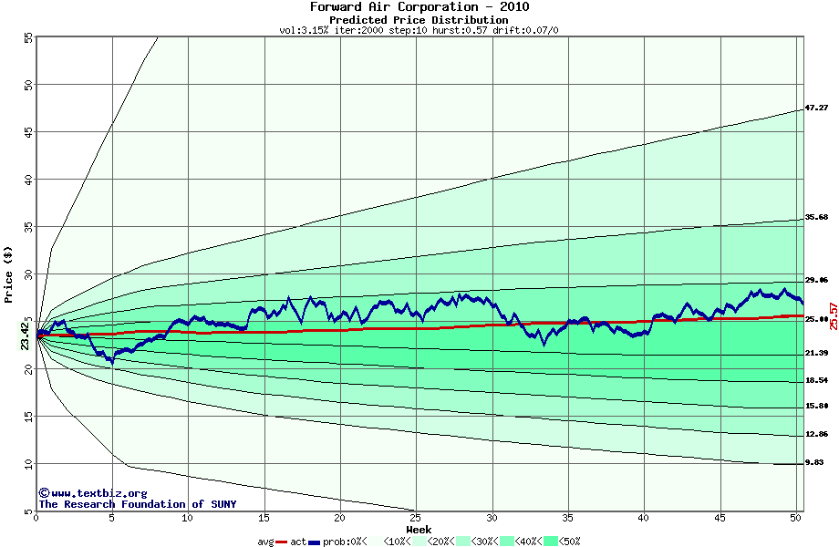 The following graph plots the year-to-date performance of the stock for 2010 compared to the probability calculated by a random walk model.