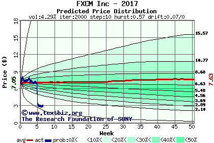 The high to date and low to date prices of the stock plotted against a random walk model for 2017 (what's this?).